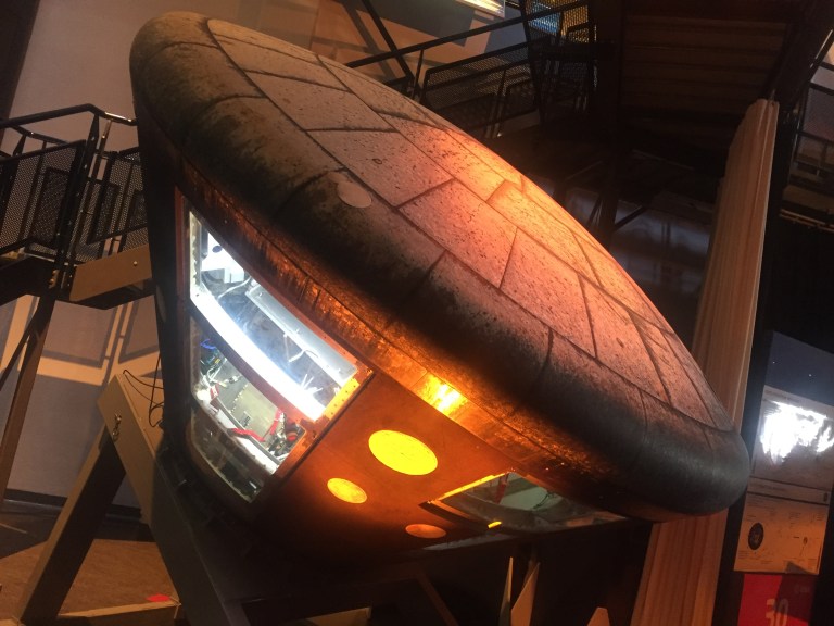 This is the actual drop test model of ESA’s IXV space plane that was built to be dropped from a helicopter and parachuted into the Mediterranean. It’s aim was to ensure the actual flight model would survive splashdown at the end of its plunge from space.