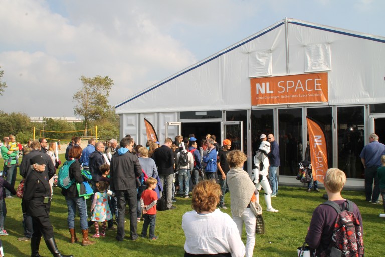 Stormtroopers! The Dutch Garrison of the 501st Legion, a Star Wars fan costume organisation, were patrolling and posing for photographs as I crossed the threshold into the European Space Agency’s Research and Technology Centre, which rather invitingly glowed in the morning light cast by the rising Sun, and with it, the annual Open day had its dawn.