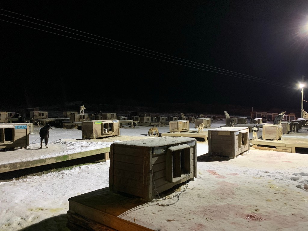 You can hear the dogs before you see them. A chorus of barking and howls signal our arrival and as they hear our footsteps approaching ever closer, the welcome gets even louder. Entering the kennel field, 200 huskies are either standing on their houses or resting in the snow, and begin enthusiastically, uncontrollably wagging their tails begging for a stroke behind the ears. I happily obliged.