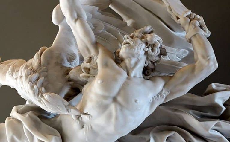 When looking at the creation of the Gods, at a point in which the poet Hesiod calls the ‘theogony‘, the ‘birth of the Gods‘. Our champion, a titan called Prometheus made human beings in clay, mixed the spit of Zeus and the breath of Athena, and gave them life. But Zeus refused to allow us to have fire, and the fire I think means both literal fire, to allow us to become Bronze Age man, to create weapons and to cook meat and to frighten the fierce animals, to become the strongest physically and technically, but also the internal fire of self-consciousness and creativity, the divine fire. Zeus didn’t want us to have it.